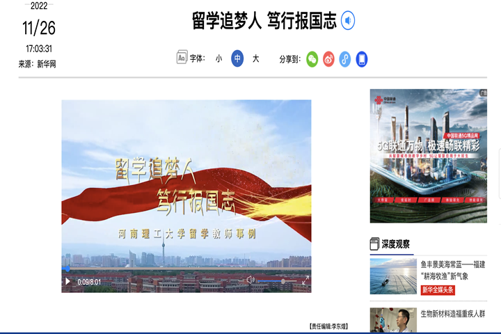 根据教育部留学服务中心和河南省教育厅关于开展“弘扬科学家精神 传承留学报国传统”视频作品征集活动的通知,我校按要求提交了视频作品《留学追梦人 笃行报国志》。目前,该作品已通过遴选和审核,在留学服务中心、新华网上线展播。