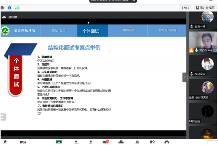 本次培训由新乡医学院培训基地负责实施,因培训正值疫情严控期,培训方式由原计划的线下培训转为线上教学。此次培训以服务学生就业需求和能力提升为出发点,共10个主题10次课,既有就业信息搜集、求职方向的探索与决策,又有自身优势识别与分析、简历的撰写与表达能力的提升等系统的求职能力提升培训环节,覆盖大学生从求职准备到签约就业的全过程。就业导师采用案例分析、小组讨论等互动式教学方法,充分调动了学生的学习积极性,提升了学生求职分析的能力,获得了同学们的一致好评。同学们表示,此次培训对于正处求职阶段的他们意义重大,通过此次培训不仅明晰了职业认知、提升了职业技能,也为求职路上迷茫的自己指明了方向。