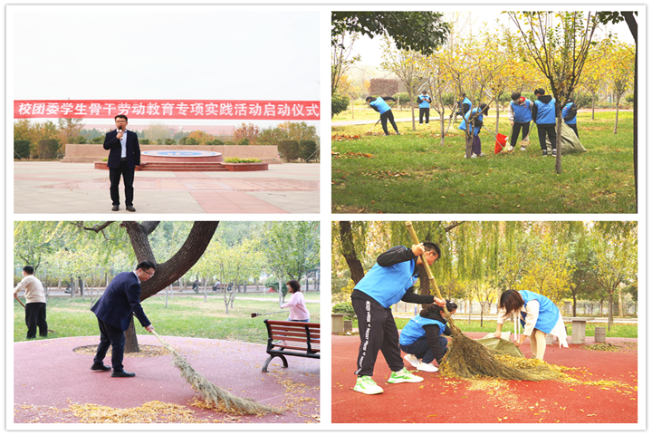 本网讯(通讯员 王思思 )为进一步落实《中共中央国务院关于全面加强新时代大中小学劳动教育的意见》,加快构建德智体美劳全面培养的教育体系,引导学生树立良好的劳动观念,在劳动中接受锻炼,磨炼意志、强化责任担当,同时,积极响应学校关于开展“维护校园环境 助力疫情防控”志愿服务活动号召。11月1日,“学生骨干劳动教育专项实践活动启动仪式”在学校南校区历史文化园广场举行。校院“青马工程”培养班学员及校学生会成员代表参加启动仪式,校团委书记支光辉参加启动仪式。