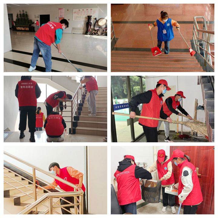 本网讯 (通讯员 王思思)奋斗是青春最亮丽的底色,行动是青年最有效的磨砺。近日,受疫情封控影响,后勤维洁工作人员无法到岗工作。为保持校园卫生,维护美丽和谐的校园环境,校团委主动请缨,校院青协和学生会骨干成员迅速行动,一个又一个红马甲的身影出现在校园里和各个学院,他们有条不紊的清扫地面、擦拭门框、整理落叶、打扫楼梯,认真清理每一个角落。用自己的双手呵护校园环境,营造健康和谐美丽的良好氛围,为我校疫情防控和美丽校园建设贡献力量。