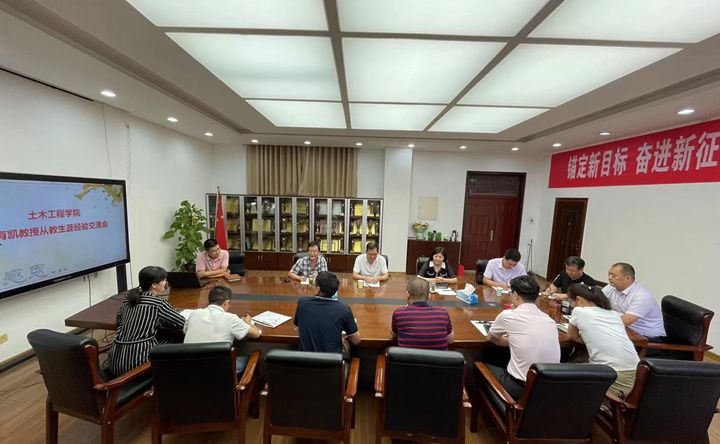 本网讯 (通讯员 吴丽容/文 朱运华/图)9月13日,土木学院在二楼会议室举办了“依依惜别意,浓浓感恩情”王有凯教授荣休暨从教生涯经验交流会,王有凯教授、该院领导班子、教师代表及王有凯学生代表参加了座谈会,会议由该院院长丁亚红主持。