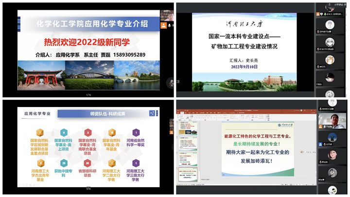 为使2022级新生更快适应大学生活,更加深入了解所学专业的基本情况,更好地规划自己的学业生涯,化工学院于9月10日下午通过线上会议的方式分专业组织召开了4场2022级本科生专业介绍会暨入学教育大会,该院应用化学系主任贾磊、化学工程与工艺系主任曹建亮、矿物加工工程系主任史长亮、储能科学与工程系主任王枫分别担任主讲,学生学业导师、新生辅导员以及2022级全体本科生参加会议。