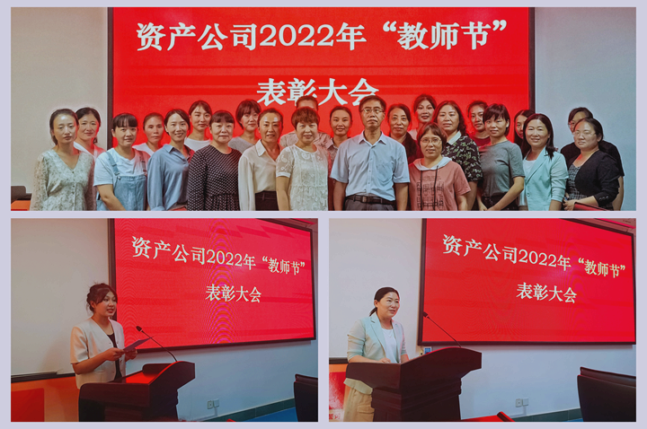 本网讯 (通讯员 刘冬卉 王芬)为庆祝第38个教师节,传承尊师重教优良传统,树立先进典型,凝聚榜样力量,资产公司于9月8日下午组织召开2022年度教师节表彰大会。资产公司党总支书记兼董事长杨鉴淞出席会议,理工教育中心主任许玉先主持会议,附属小学、幼儿园20余名优秀教师代表参加了表彰大会。
