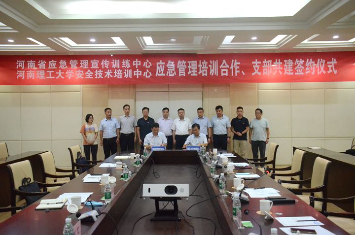 本网讯 (通讯员 刘笑天)9月5日,河南省应急管理宣传训练中心(河南省应急管理通信保障中心)与继续教育学院(安全技术培训中心)开展培训合作与支部共建签约仪式在学校举行。河南省应急管理宣传训练中心书记黄清华、副主任李俊,焦作市应急管理局副局长杨波涌,副校长朱建光出席签约仪式。仪式由继续教育学院党总支书记史君锋主持。