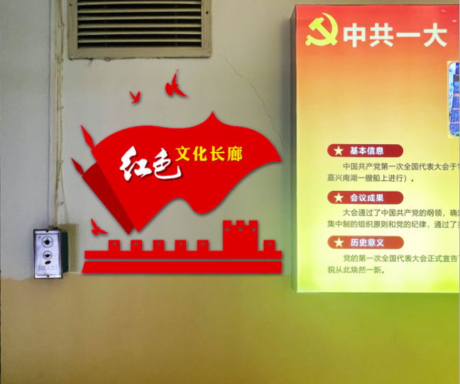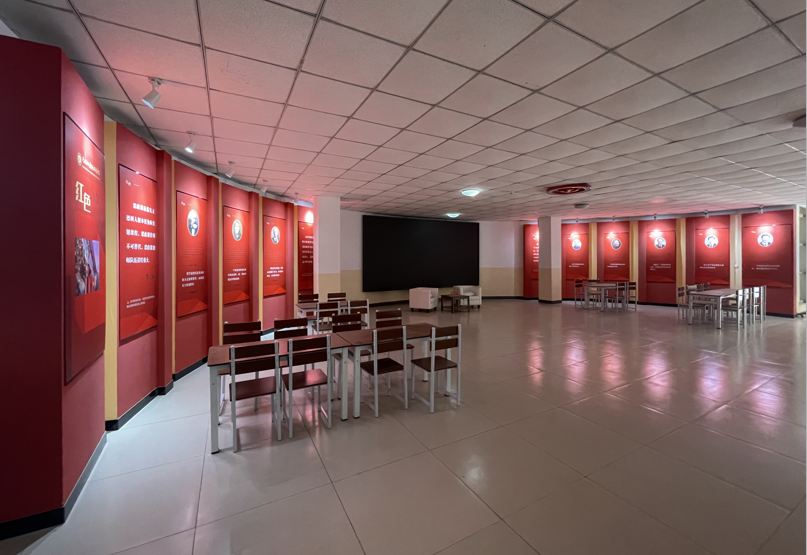 “一廊”,即,红色文化长廊,在文科楼二楼西区。布展了两个主题:“世界社会主义500年”“中国共产党历次全国代表大会”;“一墙”,在二楼东区。即,红色文化展墙,布展了“习语金句”“习语近人”“社会主义核心价值观”等内容;“一沙龙”,在二楼中心区。即,红色文化沙龙,设计布置了LED彩屏、主题展板、桌椅等,可以组织师生观看主题直播,举办沙龙活动,开展“沉浸式”红色教育,录制思政微课。
