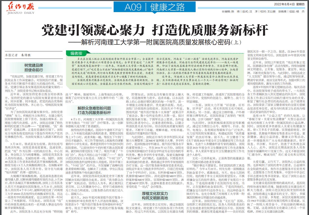 ——解析河南理工大学第一附属医院高质量发展核心密码(上)
