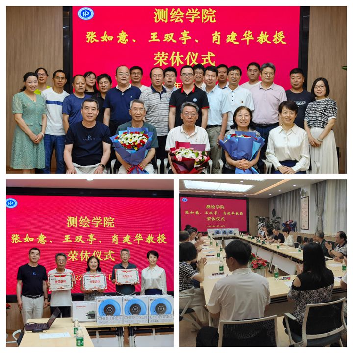 本网讯 (通讯员 李静/文 梁翠英/图)7月11日下午,测绘学院在二楼会议室举行教师荣休仪式,三位退休教师张如意、王双亭、肖建华和该院领导班子成员、部分教工代表参加仪式。仪式由该院党委书记茹艳主持。