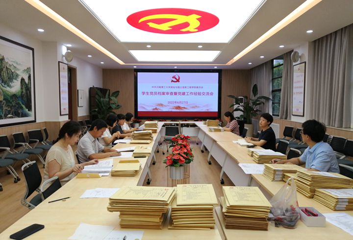 本网讯 (通讯员 李晶晶/文 邓强/图)为深入学习贯彻习近平新时代中国特色社会主义思想,全面贯彻落实好新时代党的组织路线,扎实开展“能力作风建设年”活动,测绘学院党委坚持以能力作风建设提升党建工作水平,6月27日在二楼党建活动室召开学生党员档案审查和党建工作经验交流会,会议由该院党委书记茹艳主持,该院专职组织员和全体学生党支部书记参加。