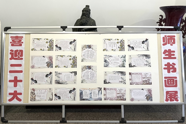本次活共收到师生书画作品40余幅,师生们的作品规范、端正、典雅、隽秀,内涵丰富,书体各异,形式多样。书法作品或工整隽秀、或挥洒白如、或浑然古朴,展现出中华汉字的悠久魅力;绘画作品笔墨淋漓、激扬山河,表现出现代中国的辉煌气派。每幅作品都集思想性、艺术性、观赏性于一体,价值导向正确,各具特色,展示出积极进取、昂扬向上的精神风貌,提升了师生欣赏美与创造美的能力。