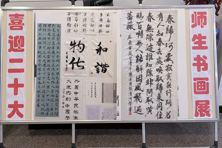 本网讯 (通讯员 邓献玲 周小梅)为传承和弘扬中华优秀传统文化,厚植师生家国情怀,提升社会责任感、使命感,以更坚定的信念永远跟党走,奋进新征程,文法学院中文系教工党支部联合研究生党支部举办了“翰墨丹青颂党恩·师生喜迎二十大”主题书画展活动。