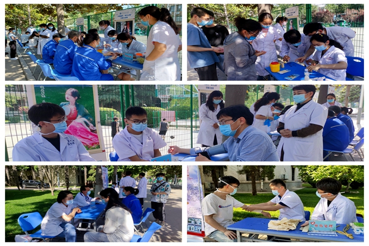 本网讯 (通讯员 王蕾)五月是鲜花盛开的季节,也是医务工作者忙碌的季节。在经历了将近三年的疫情防控生活之后,人们更加认识到了健康的重要性,作为医护人员,做好健康宣教、守护人民健康是义不容辞的职责。为迎接五月份的国际护士节、国际红十字日、国际助产士日,在“能力作风建设年”专项活动纵深推进之际,我们用实际行动践行职责,贯彻志愿服务精神,进一步丰富疫情下的校园生活,医学院护理系联合第一教工党支部于近日在北校区东西走向的焦工路上开展“疫”往无前 “护”你健康志愿者活动,为校园内的师生进行健康维护。此次活动分别设置测量血压、监测血糖、血型鉴定、疾病咨询、外伤处理五个活动项目。