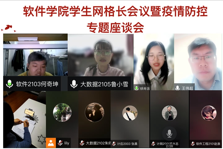 本网讯(通讯员 王小趁)为进一步加强学生思想政治引领,精准掌握学生思想动态,落实学校各项疫情防控措施和要求,4月14日,软件学院线上组织开展了学生网格长会议暨疫情防控座谈会。该院全体辅导员、四级网格长(班长、团支书)、五级网格长(入党积极分子及宿舍长)参加会议。
