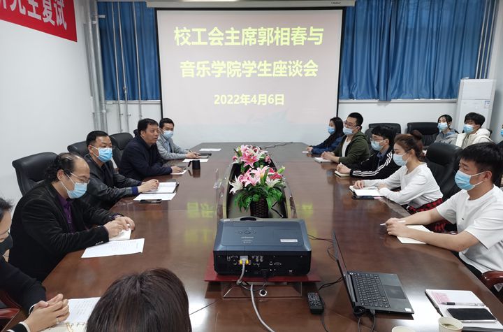 本网讯 (通讯员 李团结)为深入了解疫情期间学生的思想、学习和生活状况,4月6日上午,校工会主席郭相春在音乐学院101会议室与该院近20名本科生、研究生代表交流座谈。座谈会由该院党委书记杨玉海主持。