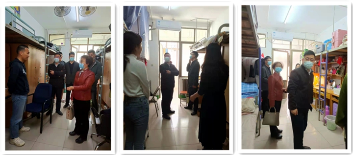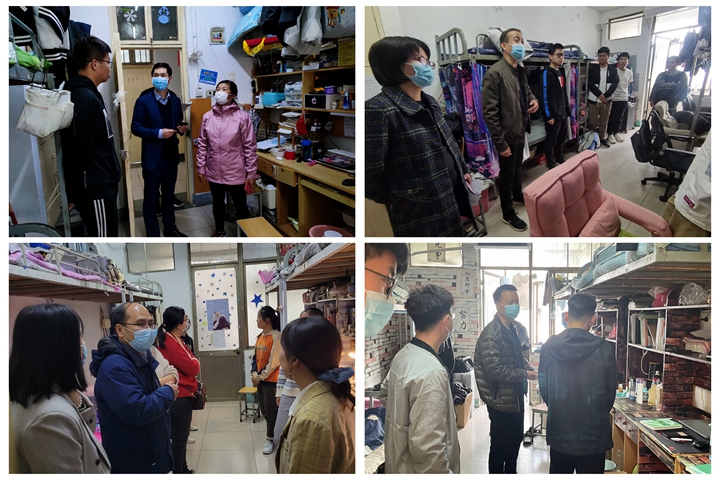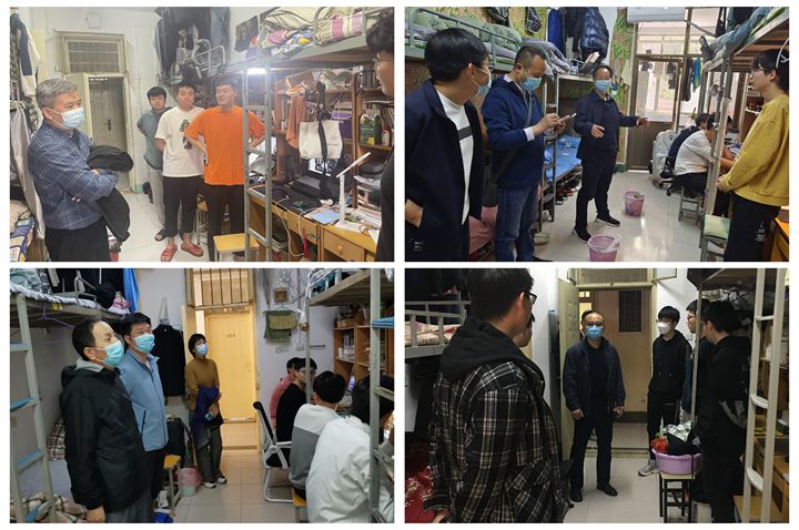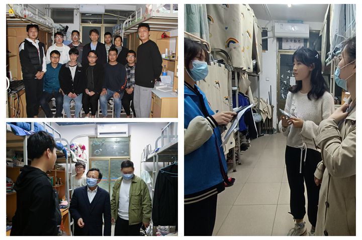 为加强疫情期间学生管理,及时了解和掌握学生的思想动态,关心学生学习状态及生活情况,全面落实学校疫情防控和宿舍安全工作管理要求,4月3日至4月6日,应急管理学院党委书记陈昊、执行院长张小兵、副书记赵观石、副院长吴晓涛、全体辅导员、班主任、学业导师深入竹3、松8、兰6宿舍楼共132间学生宿舍进行走访检查。
