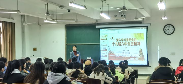 会议伊始,陈昊指出党的十九届六中全会是在我们党成立一百周年的重要历史时刻,在党和人民胜利实现第一个百年奋斗目标、全面建成小康社会,正在向着全面建成社会主义现代化强国的第二个百年奋斗目标迈进的重大历史关头召开的重要会议。随后他围绕十九届六中全会会议介绍、党的百年奋斗重大成就、党的百年奋斗历史意义、党的百年奋斗历史经验及不忘初心推进中华民族伟大复兴五个方面进行全面的讲解,重点阐述了“四个伟大成就”“两个确立”“一个根本问题”“五大历史意义”“十个坚持”等全会核心内容。最后,他号召广大学生要深刻把握实现中华民族伟大复兴这一鲜明主题,弘扬光荣传统、赓续红色血脉,把自己的小我融入祖国的大我、人民的大我之中,努力学习各项知识,与时代同步伐、与人民共命运。