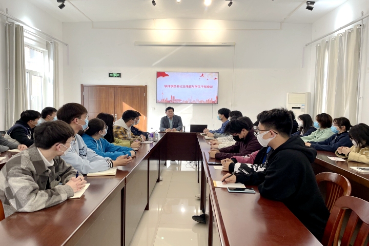 本网讯(通讯员 王小趁)为全面落实立德树人根本任务,弘扬“好学力行”校风、“勤勉求是”学风,3月4日下午,软件学院党委书记王伟超与2021级学生干部代表座谈交流。
