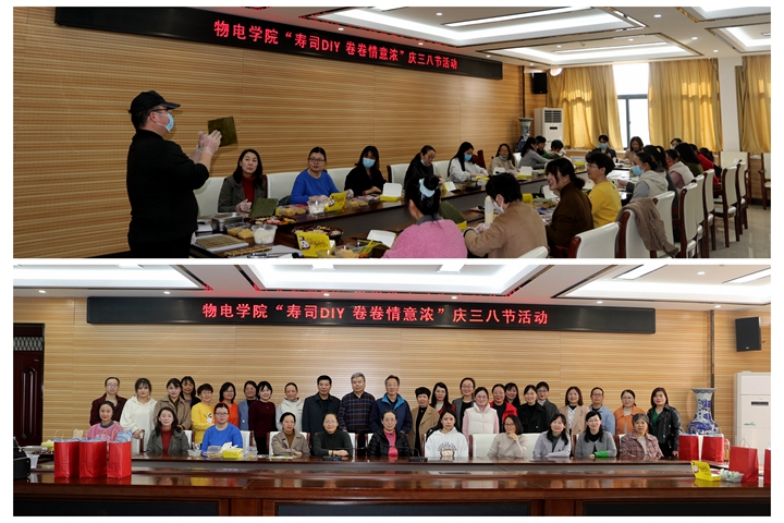 春风送暖,万物复苏。在第112个“三八”国际劳动妇女节来临之际,为丰富女教工精神文化生活,进一步激发女教工的教学工作热情,3月8日下午,物电学院于综合实验楼235室举办“寿司DIY 卷卷情意浓”庆三八节活动。该院党政领导参与活动,为女教工送上最诚挚的慰问和祝福。