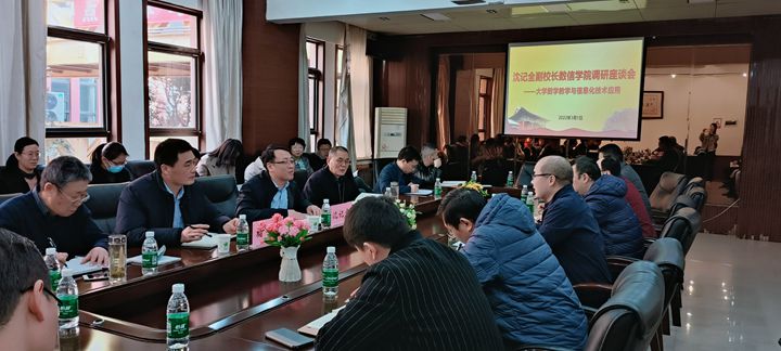 沈记全强调了高等数学等大学数学基础课在教书育人中的重要作用,探索推进信息化技术和成果在课堂教学中的应用,从而提升课堂教学效率和质量。接着,沈记全认真听取了老师们在日常教学、课堂混合式教学推进、网络教学平台应用等过程中面临的困境和提出的问题。带着这些问题,沈记全针对老师们提出的智慧教室建设、网络与多媒体服务、云班课等网络教学平台的使用、信息化教学能力提升、省课堂教学创新大赛以及电子阅卷系统等问题进行了详细耐心的解答,并给出合理化建议。最后,他希望老师们充分既要发挥传统课堂讲授优势又要发挥信息技术在教学中优势,借助相关信息化教学方式方法和手段减少重复性循环性的劳动、多关注学生的课堂学习效果、实现从教师教为中心向学生学为中心转变,从而提高课堂教学的效率、效果和质量。