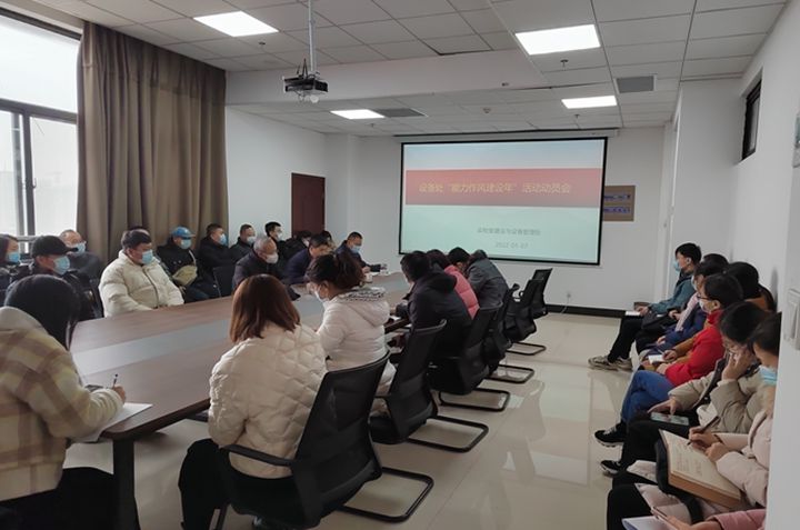 为了深入学习贯彻党的十九届六中全会精神和习近平总书记关于能力作风建设的重要论述,落实省第十一次党代会部署,开展“能力作风建设年”活动,进一步传达《中共河南理工大学委员会“能力作风建设年”活动实施方案》的精神和要求,1月7日下午,设备处在重点实验室大楼718召开“能力作风建设年”活动动员大会。会议由处长马建宏主持,设备处全体人员参加。