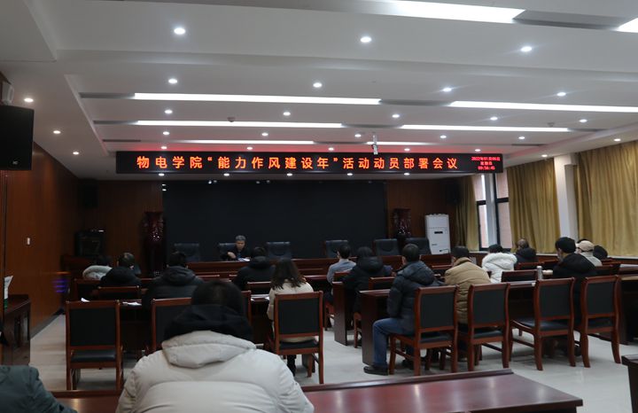 1月6日上午,物电学院在该院226会议室召开了“能力作风建设年”活动动员部署会议。该院全体教职工参加大会,会议由该院党委书记王书卿主持。