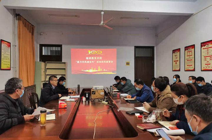 为推进“能力作风建设年”活动扎实有效的开展,1月6日上午,继续教育学院(安全技术培训中心)召开“能力作风建设年”动员部署会,全体教职员工参加会议。会议由党总支书记史君锋主持。
