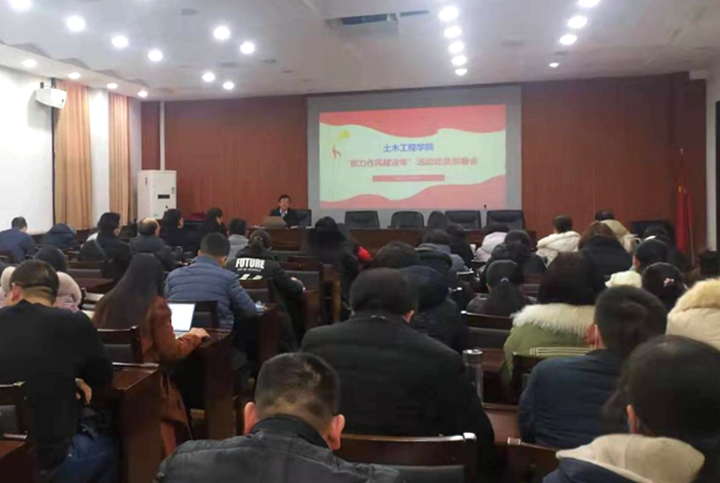 1月8日下午,土木工程学院在该院一楼报告厅召开“能力作风建设年”活动动员部署会,学院全体教工参加会议,会议由该院党委书记刘希亮主持。