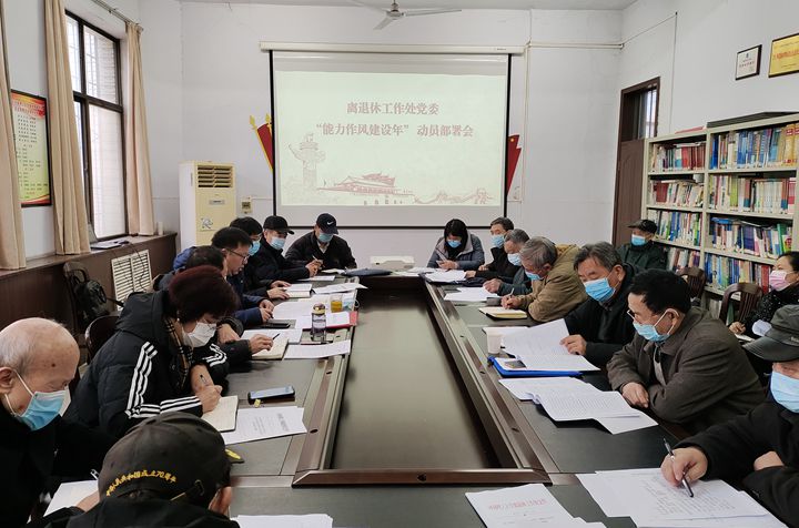 1月11日上午,离退休工作处党委在北校区慕贤楼一楼会议室召开“能力作风建设年”活动动员部署会。离退休职工党支部书记和全体在职职工参加会议,会议由离退休工作处党委书记王建州主持。