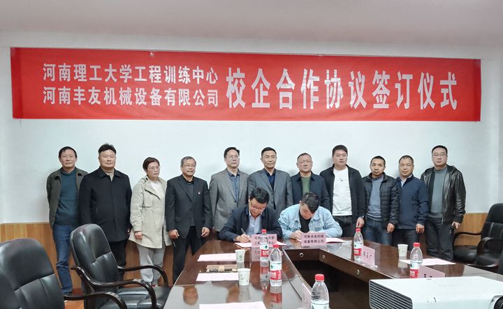 在与会人员的共同见证下,工程训练中心与河南丰友机械设备有限公司代表在校企合作协议书上签字。协议的签订,标志着双方在深度合作方面迈出了关键一步,为复合性创新型人才培养奠定了坚实基础。