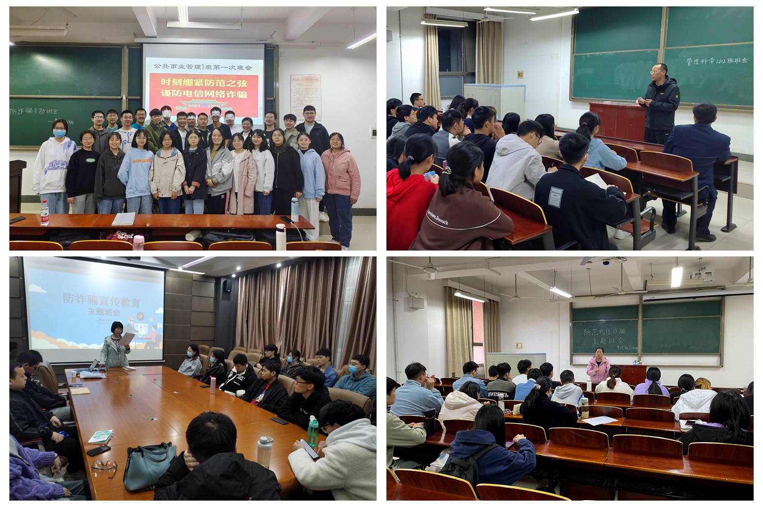一是主题宣讲,感受安全。各年级辅导员班主任,以PPT的形式为学生讲述了各类电信诈骗的真实案例,强调了大学生预防电信网络诈骗的重要性。二是观看视频,强化安全。通过播放安全防范电信诈骗视频让同学们了解电信诈骗的常用手段以及防范电信诈骗的措施。三是主题分享,牢记安全。活动进行过程中同学们踊跃发言,积极分享自己的感悟,大家纷纷表示,将在今后的学习生活中提高自己的防范意识,筑牢网络安全意识底线。