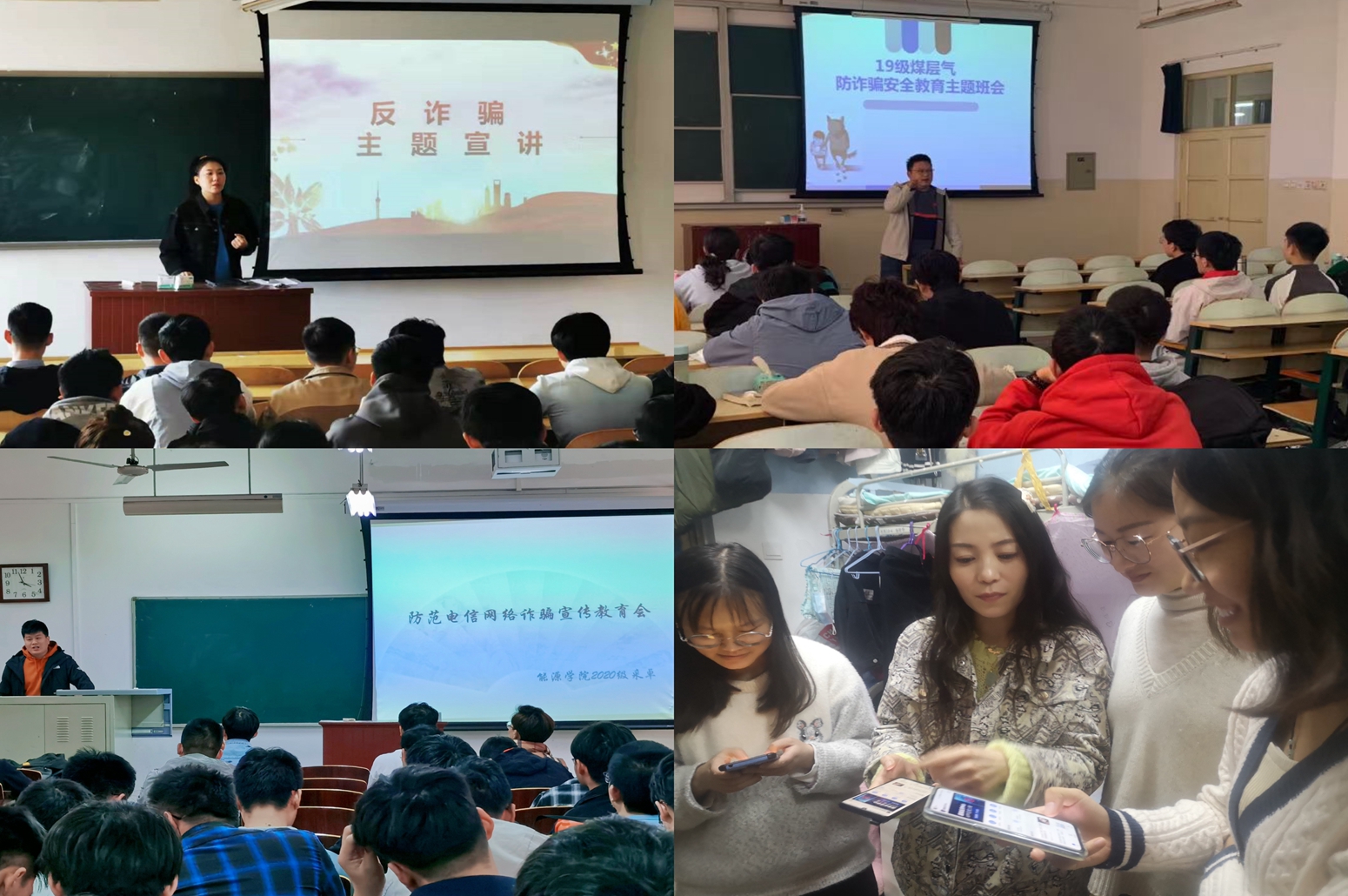 为提升同学们防范电信诈骗的意识和能力,杜绝网络诈骗案件的发生,10月16-17日,各年级辅导员分别组织各年级学生开展能源学院防范电信网络诈骗宣传教育会、辅导员老师深入学生宿舍推广“国家反诈中心”APP。