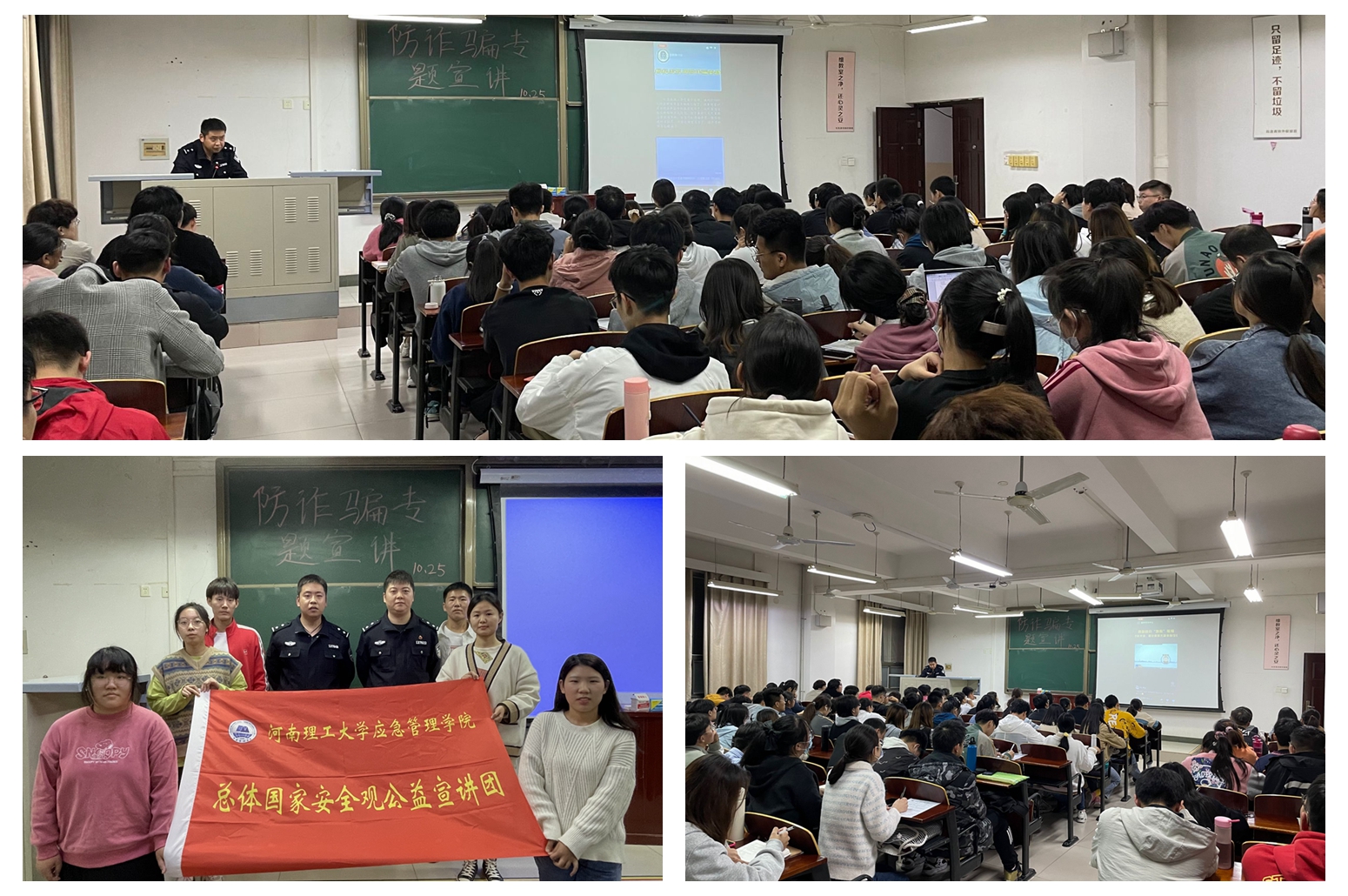 10月25日,应急管理学院院邀请焦作市公安局示范区分局刑侦大队副大队长、该院法制辅导员王峥和相关工作人员在文综楼509室开展“紧绷电信反诈之弦,共筑校园反诈堡垒”防范电信诈骗专题讲座,该院100余名师生聆听了此次讲座。