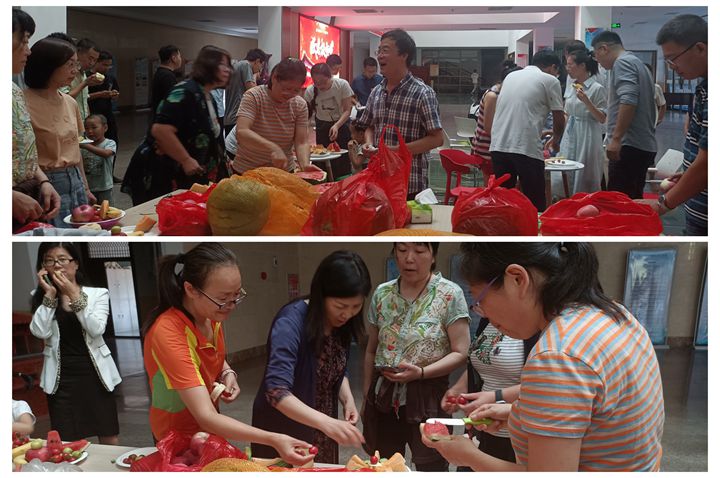 活动中,老师们凭着丰富的想象力和创造力,加上细致巧妙的切割拼合,一阵阵欢声笑语之后,一盘盘形态各异的水果拼盘就新鲜出炉了。心灵手巧的老师们精心搭配各种各样的水果,种类风格不同的水果互相配合,于一盘之上呈现,色彩绚烂,滋味清甜。看着这些作品,大家都竖起了大拇指,不得不说,这样的活动真是创意满满。之后老师们纷纷表示,要增强团结意识,更要把参与活动的这种激情与热情带到教学中去,为学生营造和谐、积极向上的学习氛围。