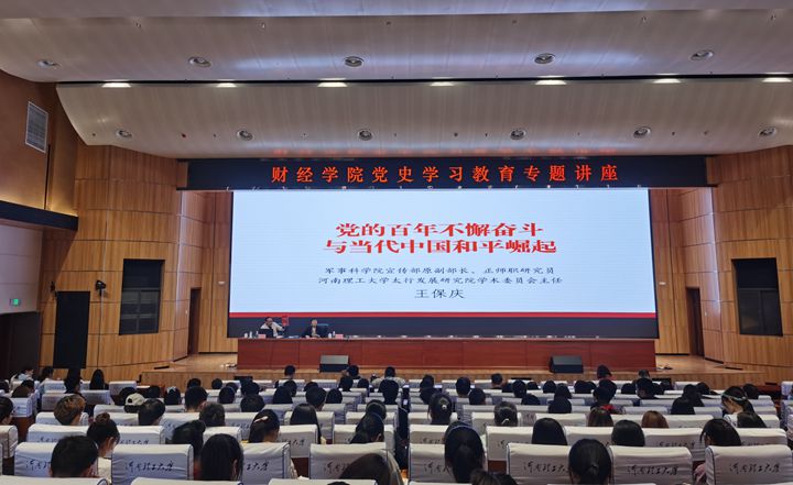 本网讯(通讯员 张贞) 4月28日下午,财经学院特邀军事科学院原战略部研究员王保庆教授在学校新图书馆A报告厅作党史学习教育专题报告。该院全体教师及学生代表共330余人聆听了报告会,会议由该院院长梁丽娟主持。
