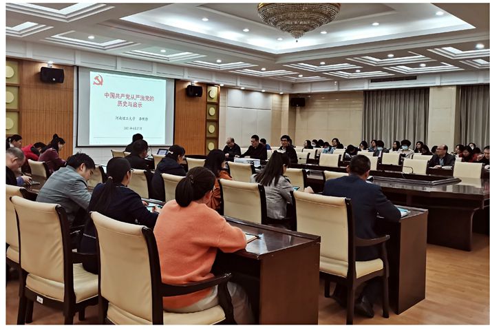 本网讯(通讯员 王宁 秦明星)为推动党史学习教育深入开展,引导全体党员干部重温百年党史,4月27日下午,学校党史学习教育专题宣讲团专家李照修教授在力行楼一楼会议室作了题为《中国共产党从严治党的历史与启示》的专题报告。校纪委办、财务处、国教院全体教工聆听了报告。