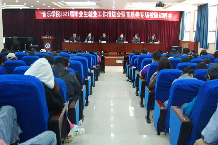 3月30日下午,音乐学院在文综楼一楼第二音乐厅召开2021届毕业生就业工作推进会暨音乐类专场校园招聘会。该院领导班子成员、招生就业处相关负责人,该院各科室、系(部、所)负责人、2021届本科和硕士毕业生参加会议。会议由该院党总支副书记王建军主持。