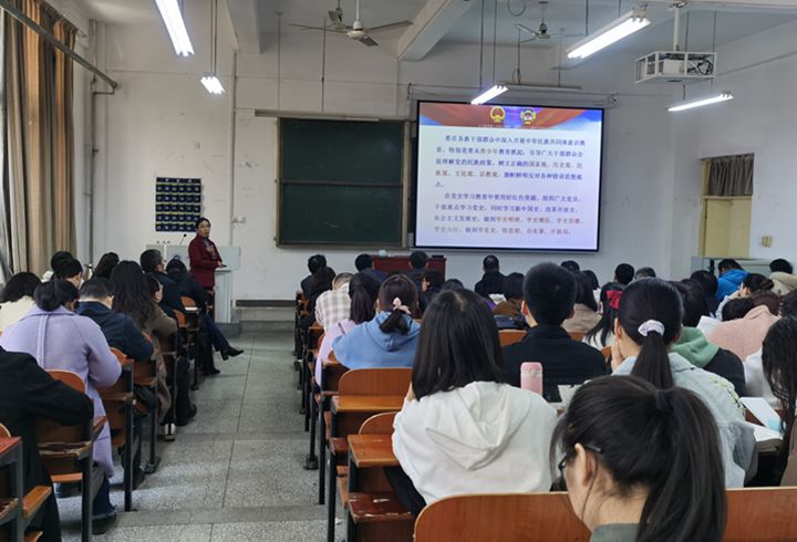 李东艳从习近平总书记在大会期间的重要讲话精神、“两会”概况、政府工作报告、全国人大常委会工作报告、关于完善香港特别行政区选举制度的决定等方面进行了解读。她指出,2021年全国两会是在中国共产党百年华诞之际、在“两个一百年”奋斗目标历史交汇的关键节点,在全面建设社会主义现代化国家新征程起步之年召开的一次重要会议。大会决定了一系列影响深远的重要事项,并对今年及下一阶段工作作出了全面的部署和安排。我们应充分重视全国两会精神的学习,关注党中央在关心什么、强调什么,对国之大者要做到心中有数。在全国正在开展的党史学习教育中要用好红色资源,组织广大党员、干部重点学习党史,做到学党史、悟思想、办实事、开新局。教育是国之大计、党之大计,坚持为党育人、为国育才,特别是要从青少年教育抓起,树立正确的国家观、历史观、民族观、文化观、宗教观,努力构建具有中国特色、中国风格、中国气派的学科体系、学术体系、话语体系。要坚定不移走高质量发展之路,建设高质量教育体系,提高高等教育质量,发展更加公平更高质量的教育。
