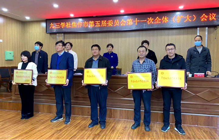 会上传达学习了社中央十四届四次全会和社省委八届五次全会精神,孙菊梅代表九三学社焦作市第五届委员会做年度工作报告,河南理工大学基层委员会副主委张盛介绍了九三学社河南理工大学基层委员会2020年度工作开展情况。社市委对2020年度社务工作先进集体和先进个人进行了表彰。我校基层委员会荣获“2020年度社务工作先进集体”荣誉称号,同时我校苏现波教授荣获“组织建设先进个人”,王华荣获“思想宣传先进个人”,吴现为荣获“社会服务先进个人”,王辉、杨学峰、刘照国、王康佳荣获“ 社务先进个人”荣誉称号。