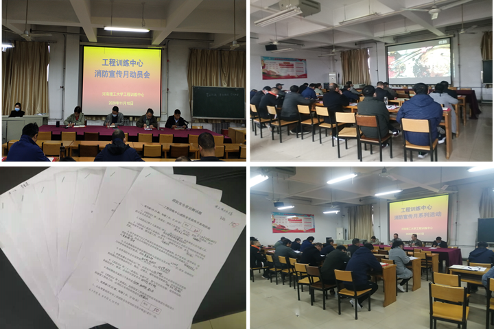 根据《河南理工大学关于开展2020年“119”消防宣传月暨校园安全文化节活动的通知》(校综治委〔2020〕8号)文件精神,结合中心消防宣传月活动安排, 11月17日,工程训练中心围绕“关注消防,生命至上”的消防主题,在中心四楼会议室组织开展了消防宣传系列活动。