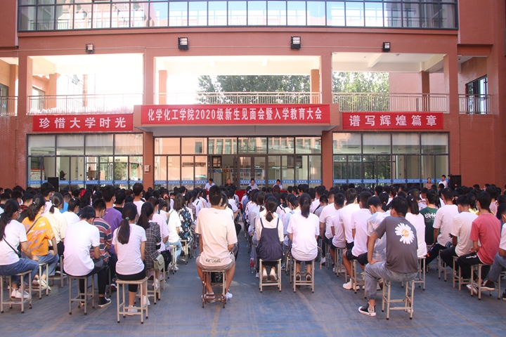 为帮助新生尽快适应大学生活,了解专业特点,进一步提高安全意识,9月16日上午,化学化工学院在综合实验楼一楼广场召开2020级新生见面会暨入学教育大会。该院领导班子成员、各系(室)主任及新生辅导员、班主任及380余名新生参加会议。会议由该院党委副书记郭学鹏主持。