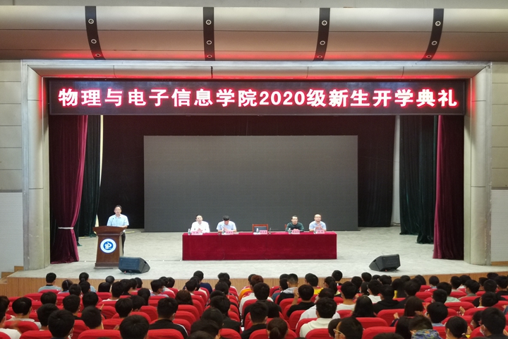 朗朗金秋,丹桂飘香。9月30日上午,物电学院在小礼堂举办2020级新生开学典礼。该院领导班子成员、全体辅导员以及班主任代表参加典礼。典礼由该院党委副书记张洪良主持。
