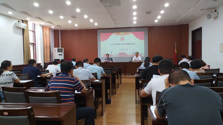 为进一步提高党员干部廉洁自律意识,筑牢党员干部拒腐防变思想道德防线,6月9日下午,土木工程学院在该院一楼学术报告厅召开2020年干部任期廉政谈话。该院党委负责人、科级干部、系室主任、支部书记参加了此次集体廉政约谈会,会议由该院党委书记刘希亮主持。