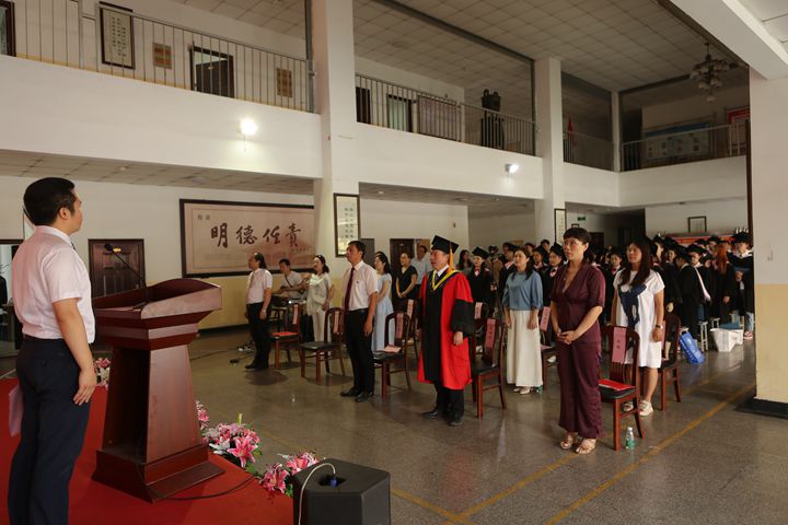 仪式在雄壮的国歌声中拉开帷幕。该院党委书记杨玉海为优秀毕业生代表颁发了荣誉证书,院长李新现为毕业生代表颁发了毕业证书,并为获得学位的同学一一授予学位并合影留念。