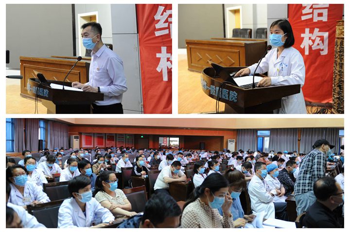 最后,一附院党委书记杨永国作总结发言。他首先代表院党委和全院干部职工向6位英雄致以最崇高的敬意和最衷心的感谢。在湖北武汉抗击疫情的紧要关头,王建峰、郭亚茹、云佳敏、周娜娜、郝龙辉、殷仰仰6位同志临危受命、奋勇逆行,舍小家顾大家,义无反顾奔赴援鄂抗疫一线。他们用行动彰显使命,用责任诠释担当,充分展现了医者仁心的崇高精神,树立了一附院的良好形象。他们是战疫英雄,是医院的骄傲。杨永国希望医院全体干部职工向英雄学习,牢记医务工作者的初心和使命,为夺取战疫全面胜利和促进医院高质量发展做出贡献!