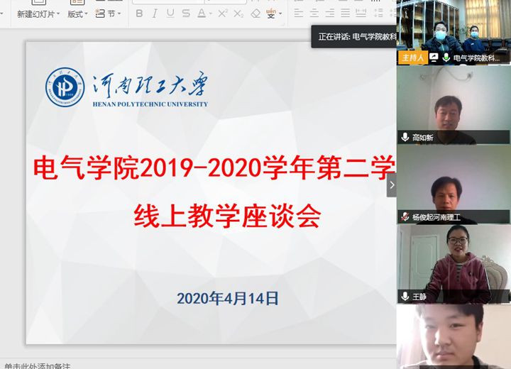 为充分了解疫情期间学生线上学习情况,全面掌握教师线上教学效果,收集学生对教学工作的意见建议,4月14日下午,电气学院利用腾讯会议平台召开了线上教学座谈会。该院党委副书记王瑞、副院长王海星,部分系(室)负责人、教师代表以及学生代表参加了此次座谈会。会议由王海星主持。