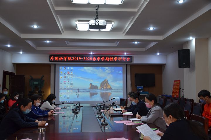 为积极推动线上教学,加强教学经验交流,提升线上课堂教学质量,4月21日下午,外国语学院在文综楼311会议室召开了2019-2020学年春季学期线上教学研讨会。该院领导班子全体成员、教学与科研办公室主任、教研室主任和部分优秀教师代表等30余人参加会议。会议由副院长李红主持。
