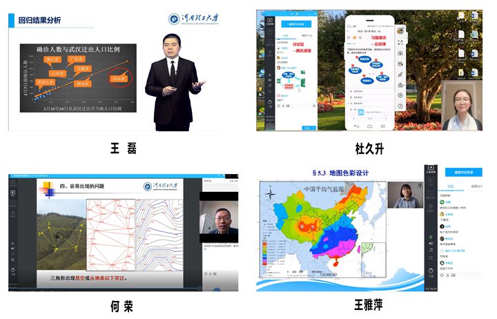 该院教师认真筹备、踊跃报名、积极参与,经教科办审核,院内专家评审,评选出7门优秀线上教学课程。获奖课程精彩纷呈、亮点突出,教学方法灵活,平台选取多样,思政元素与专业课完美融合,对于提升线上教学效果具有重要借鉴意义。其中王磊老师坚持“学生中心”理念,将疫情发展作为现实案例和教学资源,借助理论模型分析疫情态势,引导学生认识“小我”和“大我”的关系,提升民族自豪感,学好专业本领、服务社会、造福人类。王磊老师还在教务处、信管中心、地理信息科学系教学团队的共同支持下录制了课程思政微课,在广大师生中共享,传递了专业知识和正能量;杜久升老师综合运用词云、腾讯课堂答题卡、傲软投屏、云班课测验等多种在线工具,使用可量测的学习目标、可操作的习题库等课程改革5步法,同步开展“教、学、测、评”教学环节,实现即时反馈测试、趣味课堂、教学评价互动;何荣老师将“网络直播与虚拟仿真有机融合”“虚拟仿真和专业软件相结合”促进课程理论教学和课堂实习的逻辑衔接,真正保障课程内容的系统性和完整性,让注重实践的课程突破了疫情的阻碍,让学生足不出户即可以开展实验;王雅萍老师利用专业课程“画龙”、思政元素“点睛”,在OBE理念指导下,从理论到实践,“讲、论、查、做、演”多元化教学方法相辅相成,专业知识和思政育人同向同行、形成合力,学生学习效果显著提高。