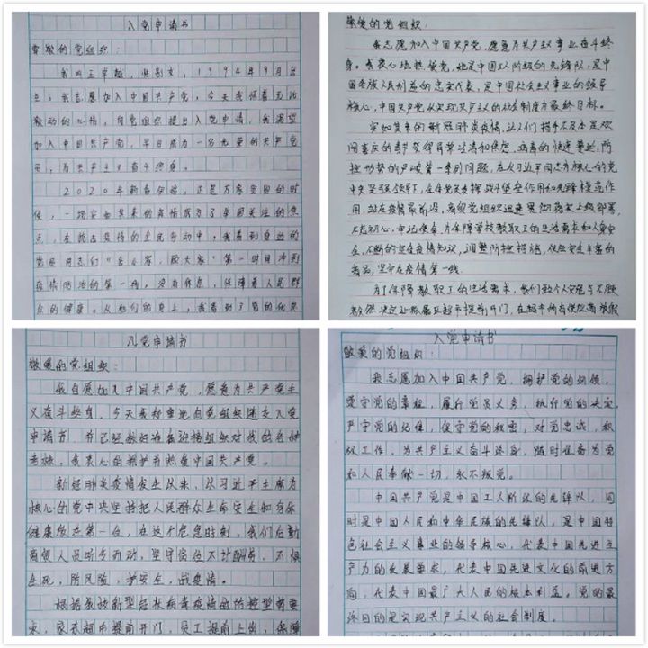 2月20日、21日,后勤集团党委商贸党支部陆续接到了刘玲玲、王卓越、闫吴月、赵娓娓等4名一线职工递交的入党申请书,讲述了他们在抗疫中为教职工做好民生商品供应保障的故事,看到和感受到党组织坚强有力的领导,表达了加入党组织的强烈决心。