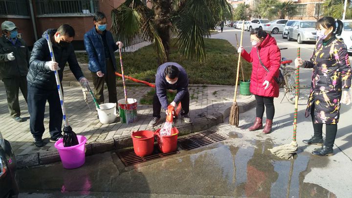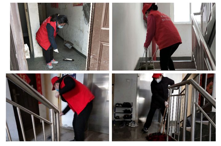 活动中,党员志愿者们在社区工作人员的安排下,拿起扫帚、喷壶等工具走上自己的岗位。大家团结协作、齐心协力,高质量地完成了滨河花园小区家属楼部分楼宇楼梯消毒、清扫地面等工作,用实际行动为打赢疫情防控阻击战贡献力量。
