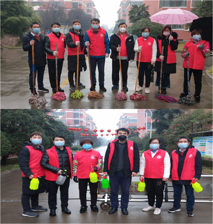 该院党委主动与社区对接联系,确定志愿服务任务和注意事项。2月27日上午,该院党员志愿者们统一着装、佩戴好口罩,准时来到集合地点。在滨河花园小区工作人员的指导下,对小区10栋居民楼楼道进行消毒,大家分工明确,逐层喷洒消毒液,努力做到不留死角。下午下起了小雨,志愿者们仍然客服困难准时集合,对所负责的家属楼楼梯扶手和楼道卫生进行打扫。大家不顾雨水已经淋湿了衣服,只想着为学校疫情防控工作尽一份自己的力量。