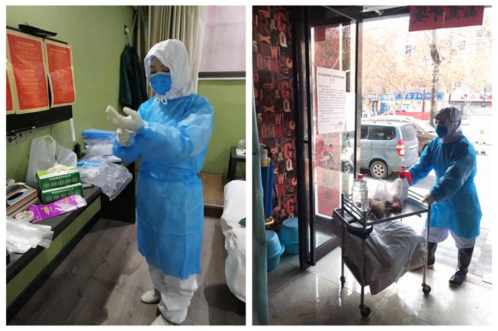2月11日清晨,任锦锦就来到了集中隔离医学观察点,穿上厚重的隔离服立即投入到紧张的工作之中。定时问询体温、送餐,清理、消毒、运送生活垃圾,转运症状明显的病人,密切关注隔离者的心理健康,做好心理疏导。在这里,连续12小时都不得停歇,1分钟也不能掉以轻心,工作强度和精细度远远超乎常人的想象。任锦锦只是埋头工作,她心中只有一个朴实的信念“救死扶伤是我的职责,我一定要把工作做好,不能落后。”她以高度的责任心和奉献精神让隔离者感受到温暖和力量,增强战胜疫情的信心。